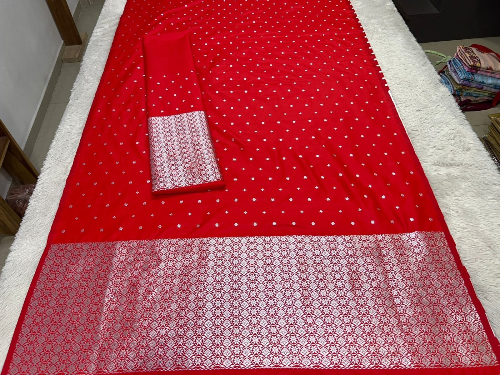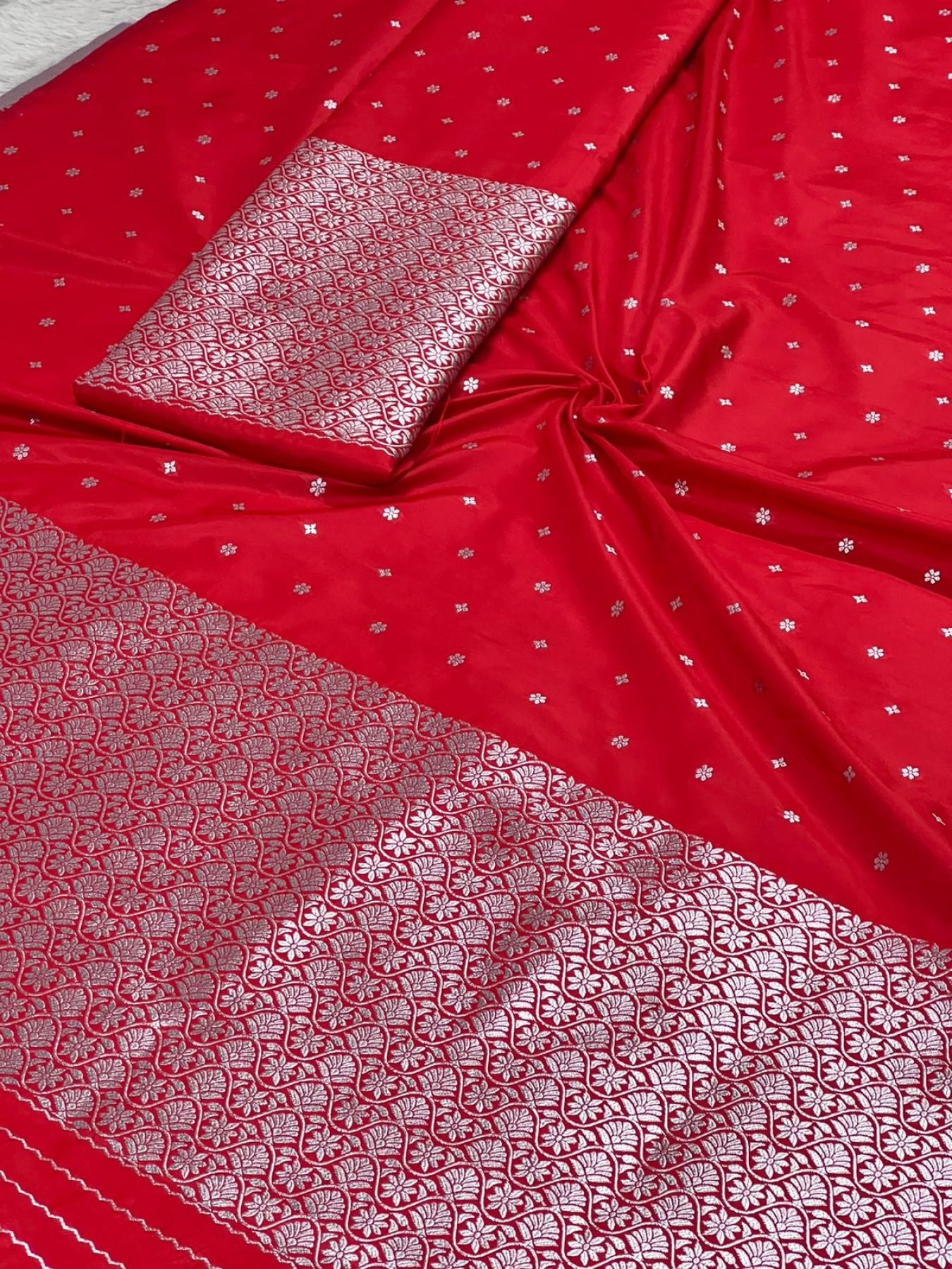 Size ChartCelebrate traditional elegance with this Red Colour Mixpat Mekhela Sador with Silver Jari. Crafted from premium-quality mixpat fabric, this classic Assamese attire features a rich red base beautifully enhanced with intricate silver jari work, adding a touch of grace and festive charm. The smooth texture and durable weave of mixpat fabric ensure comfortable draping and long-lasting wear. Perfect for weddings, festivals, cultural functions, and traditional ceremonies, this mekhela sador reflects authentic Assamese heritage while offering timeless style.